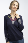 Specially digitized designs make it easy to change the shape of a t-shirt neckline - all in the hoop - no sewing skills required! Large chunky stitches embroider quickly with the included 15wt polyester rope embroidery thread. The matte finish makes these upcycled t-shirts so wearable.